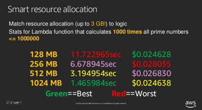 메모리를 더 많이 할당할수록 소요되는 시간이 줄어서 성능향상 가능 (더 큰 CPU제공)