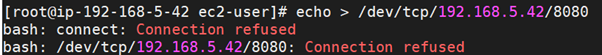 echo> /dev/{TCP|UDP}/ip주소/포트번호