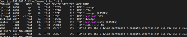 4) lsof –i@localhost
