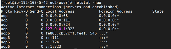5. UDP 프로토콜의 네트워크 연결상태확인 : netstat -nau