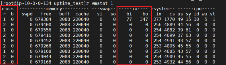 io대기열에 있는 프로세스수(b 컬럼) 1, IO 병목현상 발생