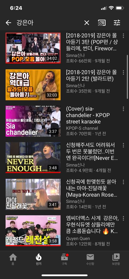 위에는 유튜브에서 커버곡 들을라고 검색한 결과