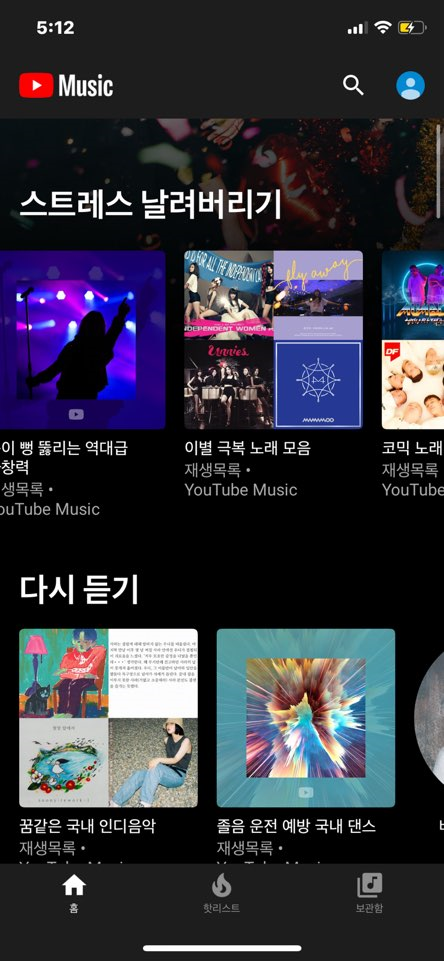 그냥 메인화면 자체가 바로 나에게 맞는 재생목록들이 기반이기 때문에