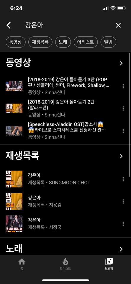 아래는 유튜브 뮤직에서 검색한 결과