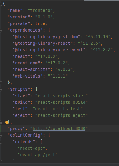 리액트의 package.json파일에 "proxy" : "http://localhost:8080"추가한다
