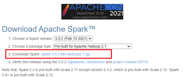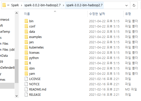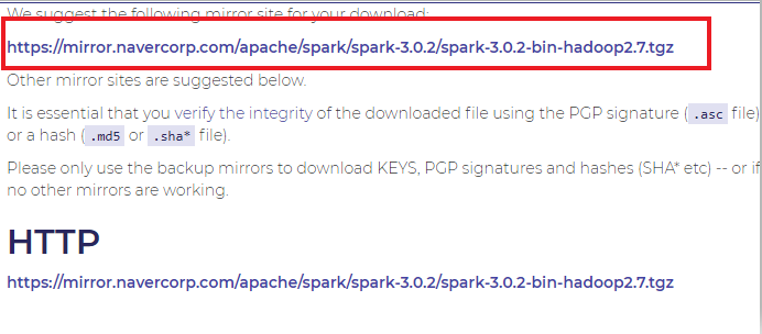 그래서 추가로 하둡을 다운로드 받는다. >> 여기에서 spark.apache.org/downloads.html