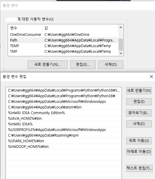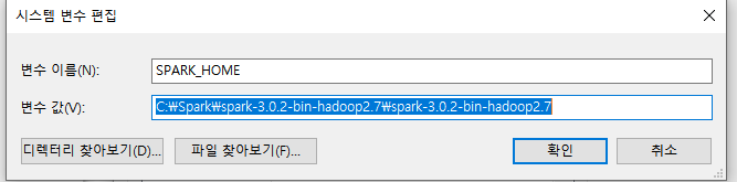 새 시스템변수 생성 : 아까 spark다운로드 받아서 넣어둔 경로추가