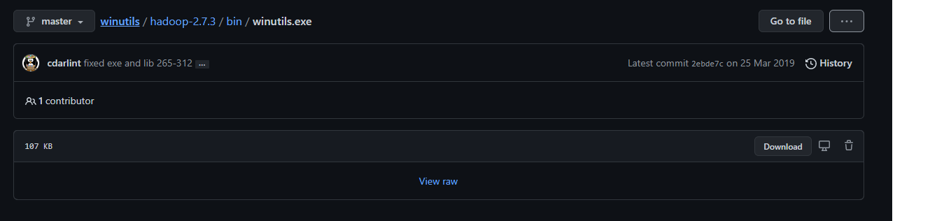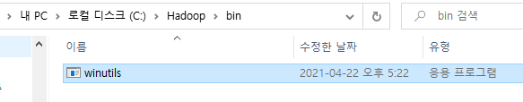 그리고 winutils.exe 파일을 다운로드 받아서 bin경로 안에 넣는다.