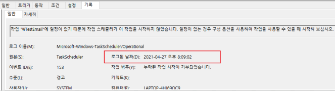 마지막실행시간을 보면 매주 실행된것처럼 보였지만, 아래의 로그가 4월 27일에 찍힌거니