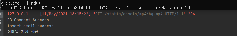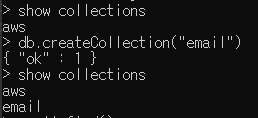 앞서서 email이라는 컬렉션을 추가해논 상태이기 때문에 insert가 된다