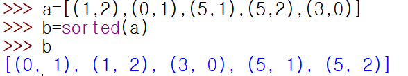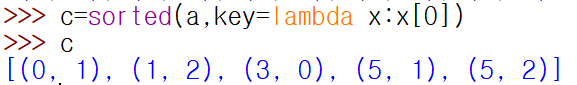 • 오름차순 정렬 : sorted(a,key=lambda x:x[0])