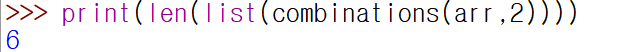총 갯수를 구하기 위해 combinations객체의 쌍을 list로 변환해 그 길이를 구하면 된다.