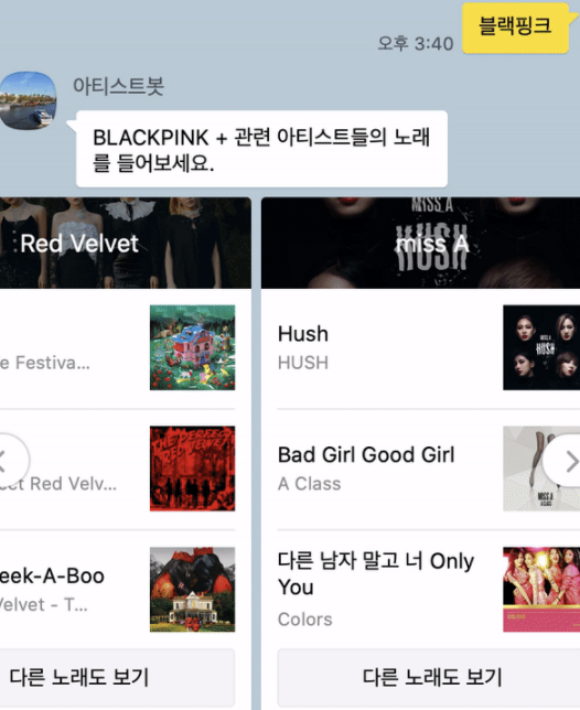 그래서 관련 아티스트의 노래 정보를 알려주는 것이다.