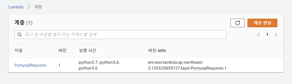 그리고 ZIP파일을 업로드해서 레이어를 생성하면 된다.