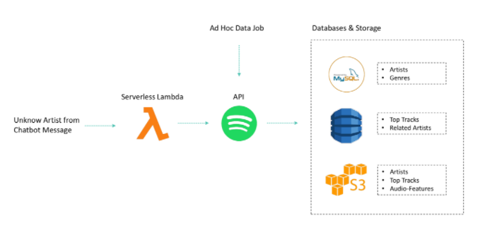 이후에 rds와 dynamodb에 아티스트정보와 음악정보가 저장된다.