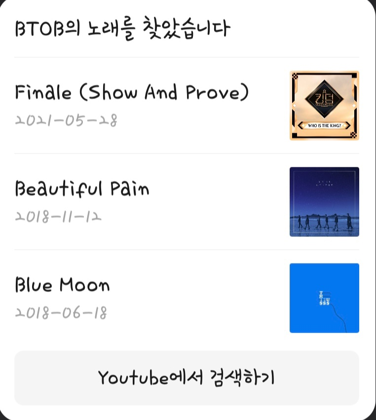 특히 그 노래정보는 최근발매된 순으로 3개만 보여줄 예정이다.