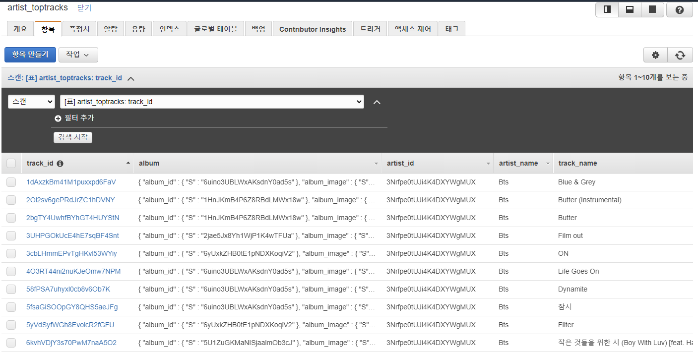 이번엔 top track 정보를 dynamodb에 저장해둘 것이다.