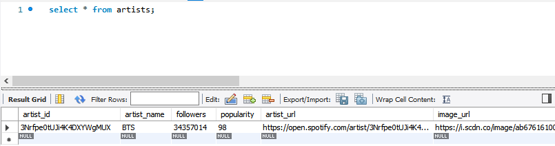 spotify API로 얻는 결과들을 AWS 데이터베이스에 저장하는 단계이다.
