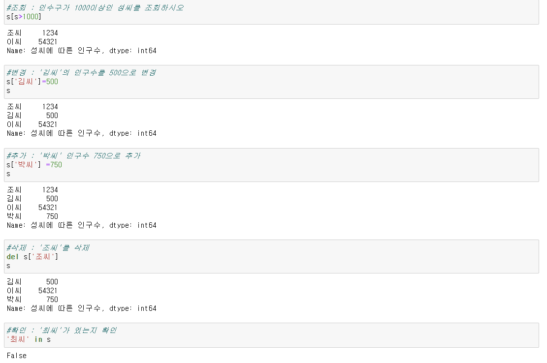 오른쪽은 index를 직접 명시해서 정의한 series(s2)에 대한 확인결과이다.