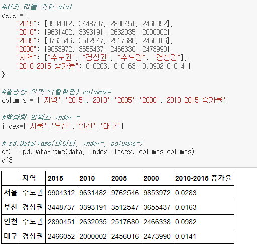 • 직접 인덱스와 컬럼이름을 지정할 수 도 있음