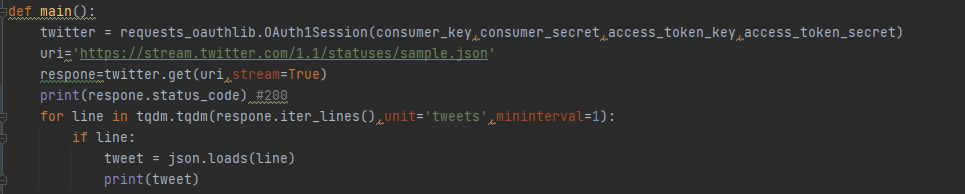 트위터에 흘러가는 트윗을 분석하는 실습을 진행해본다.
