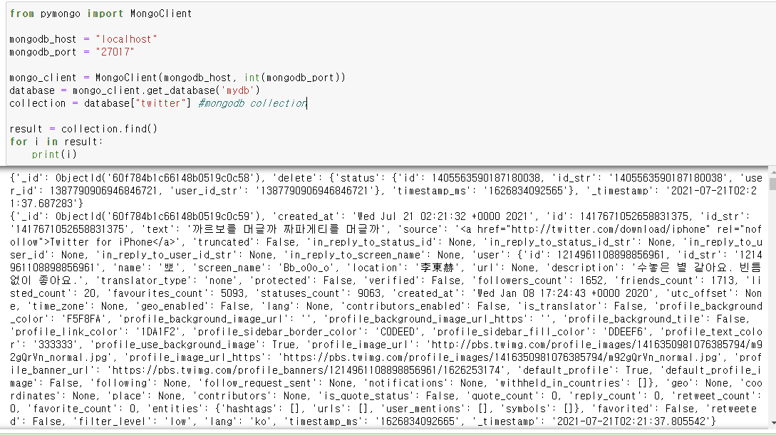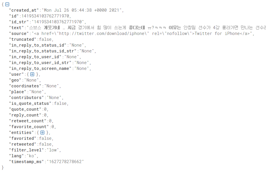2-1. 트위터 스트리밍 데이터확인