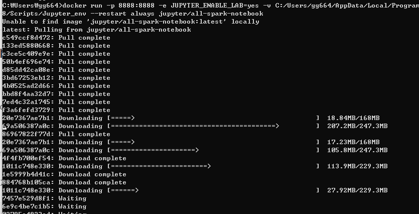 docker run -p 8888:8888 -e JUPYTER_ENABLE_LAB=yes -v [localpath]--restart always jupyter/all-spark-notebook