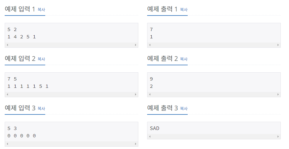 앞에 부분합(구간합)알고리즘처럼 연속적인 x일동안 방문자수들의 합을 계산해두려고 했다.