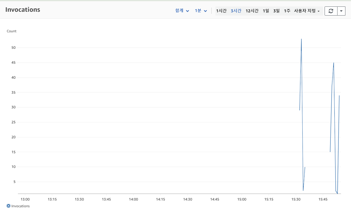 한번에 계쏙 실행시키면서 테스트해서 그런지 이랬고,, invocation 그래프는 이랬고,