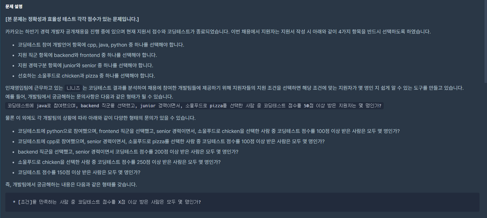 아래의 문제는 카카오 채용 코딩테스트 내용이며 코드는 직접 푼 내용입니다.