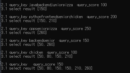 키워드로 만들 수 있는 조합으로 key를 만들고, info_dict생성(점수값을 기준으로 오름차순 생성)