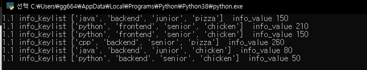 조합을 만들 데이터들은 info_keylist가 된다. 그리고 점수는 inf_value