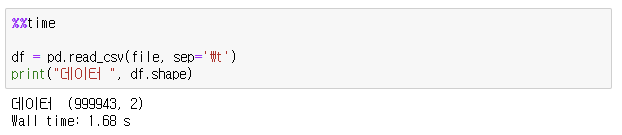 오 확실히 pandas로 읽었을때보다 훨씬 빠르긴하다!
