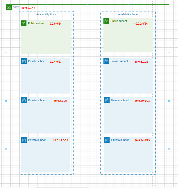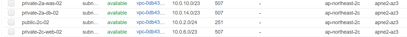 - 서브넷생성(퍼블릭2개, 프라이빗 6개)
