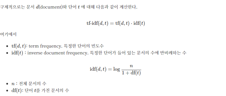 그리고 tf-idf의 원리?를 알아보려면 여기참고 > >https://chan-lab.tistory.com/24