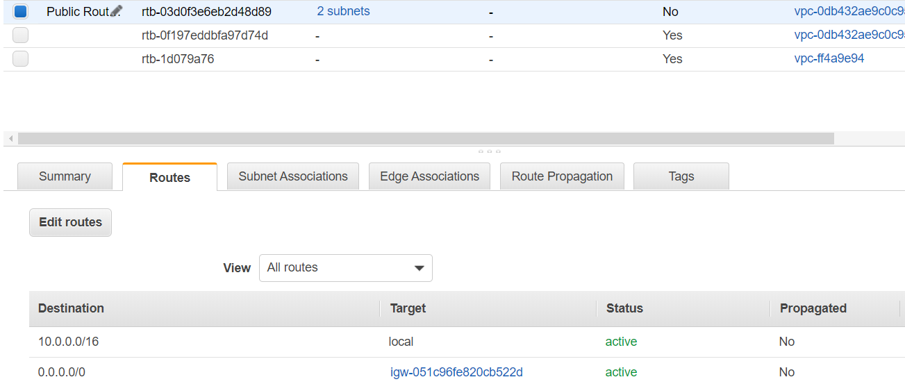 그리고 이 라우팅주소가 의미하는 타겟은 인터넷게이트웨이(igw- )다!
