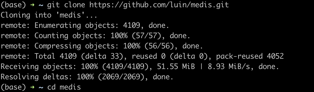 GitHub clone 받기 : git clone https://github.com/luin/medis
