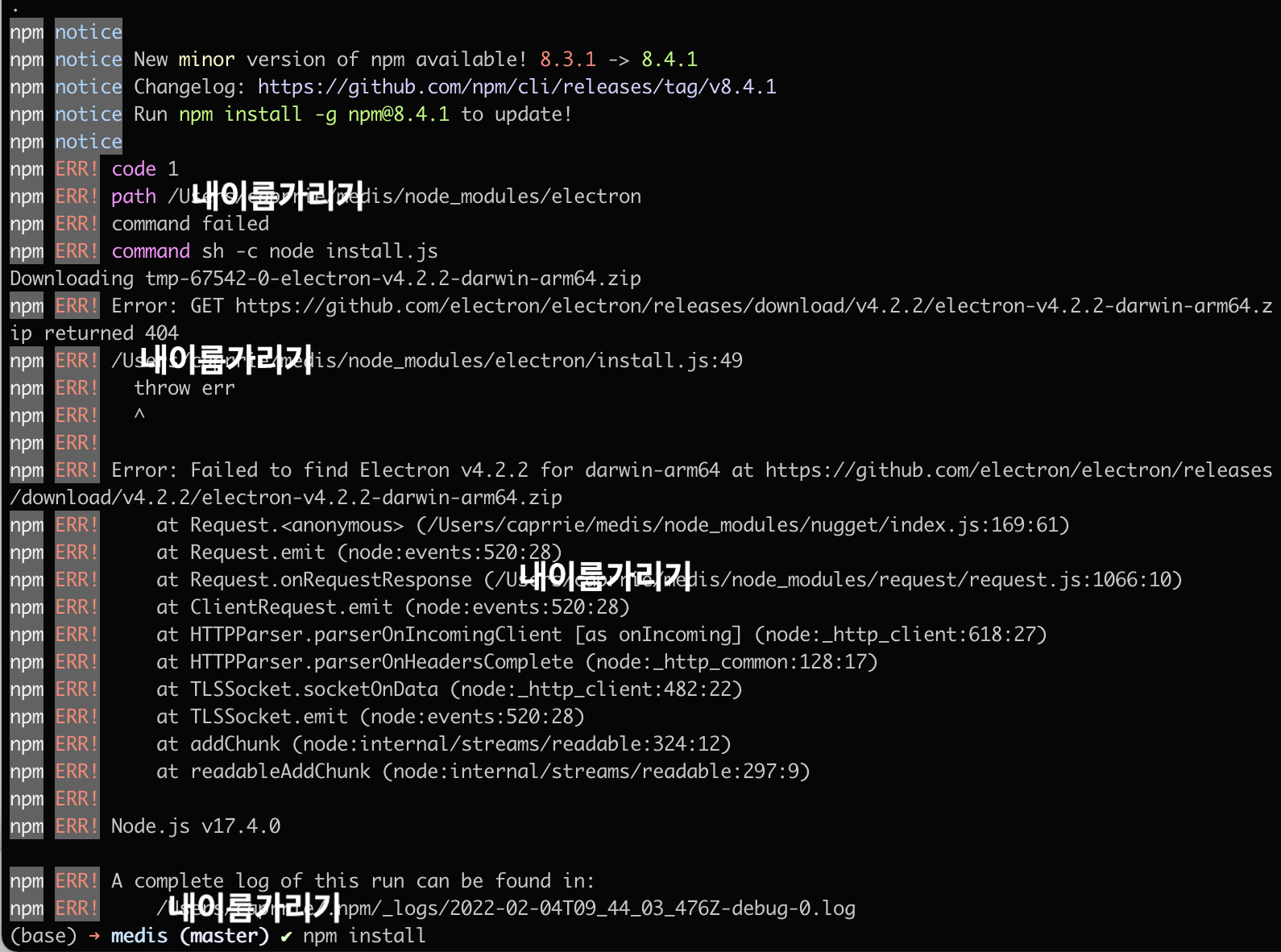 하지만 맥북 M1 이라서 그런건지,, npm install로 진행하니까 오류가 났다..Ummmm