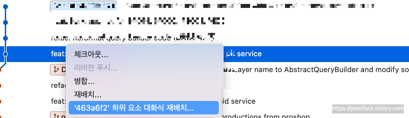 실제 사례를 못 보여주는 상황이라 아쉬운데, 이 위치에서 대화식재배치를 하면 이렇게 3개의 커밋들이 뜬다.