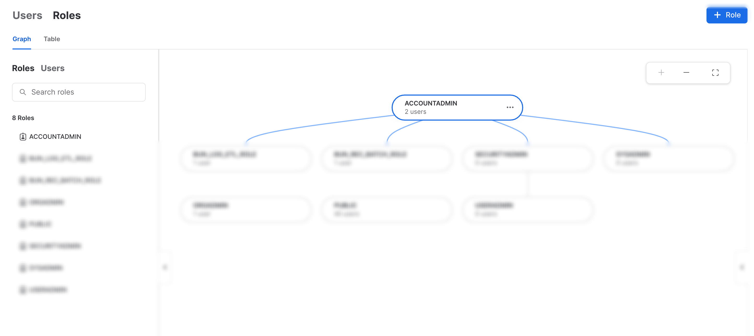 snowflake는 이렇게 role의 권한관계를 한눈에 그래프로 보여주네..ㅎㅎ