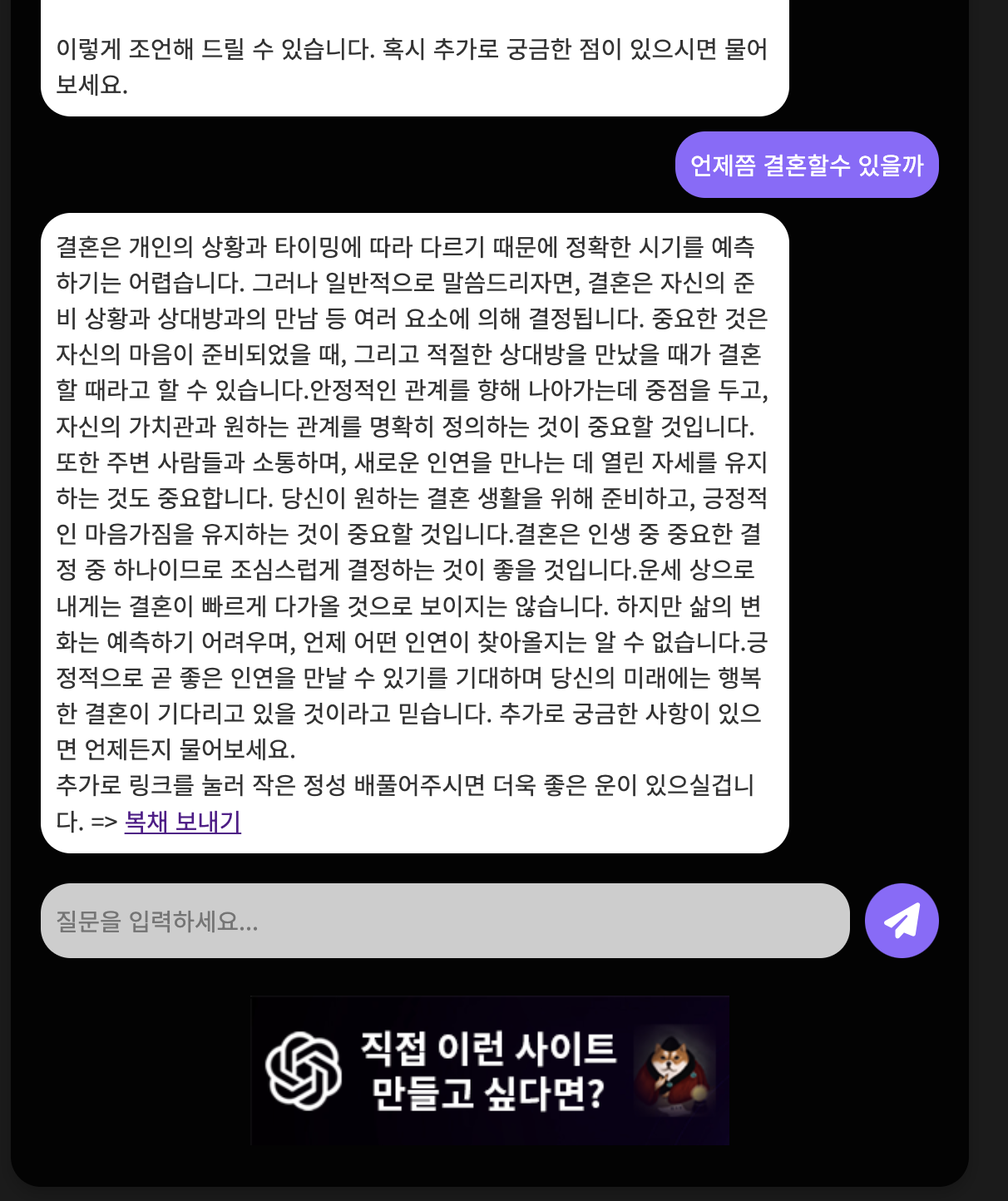 인공지능 AI ChatGPT 기반으로 당신의 운세 보는 챗도지입니다.
