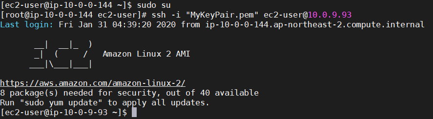 1. Bastion 호스트접속 -> private 서브넷 접속