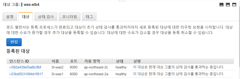 하지만 web이랑 연결이 안된 상태이기 때문에 ex-elb를 통해서 was서버로 들어가는 웹테스트는 아직 안됌!