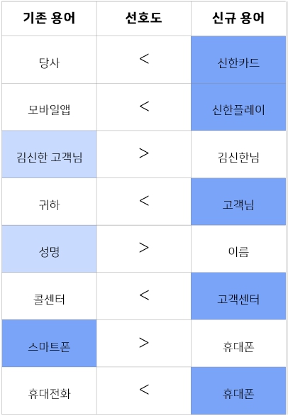 용어 표기법에 있어서 상기,하단, 수령지, 일할계산 등 한자식 용어를 한글로 바꾸니 고객 이해도가 높게 나타났다.