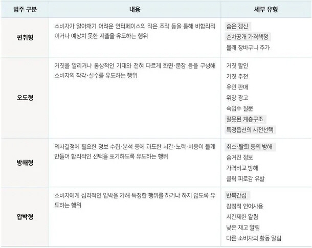 공정거래위원회에서 정의한 다크패턴