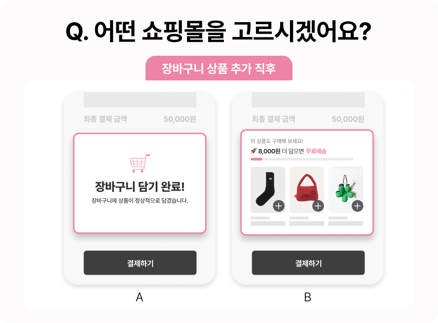 고객의 추가 구매를 이끌어내고 싶다면, A보다는 B처럼 진행상황을 시각적으로 보여주는게 유리하다.