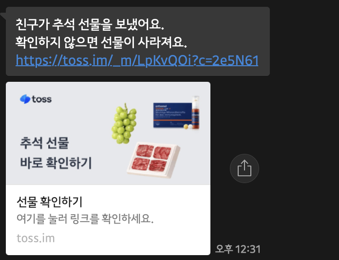 뭐랄까 약간의 부드러운 협박..?  마치 확인하지 않으면 선물 획득의 기회를 놓칠수 있다는 손실을 강조하며 클릭을 유도하고 있었다.