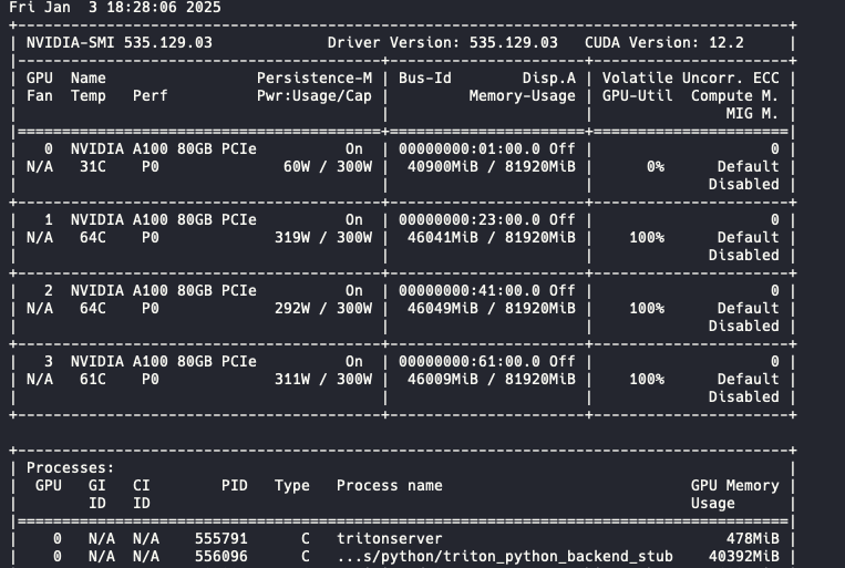그리고 이렇게 GPU 0번 서버에 트리톤이 띄워져있다.
