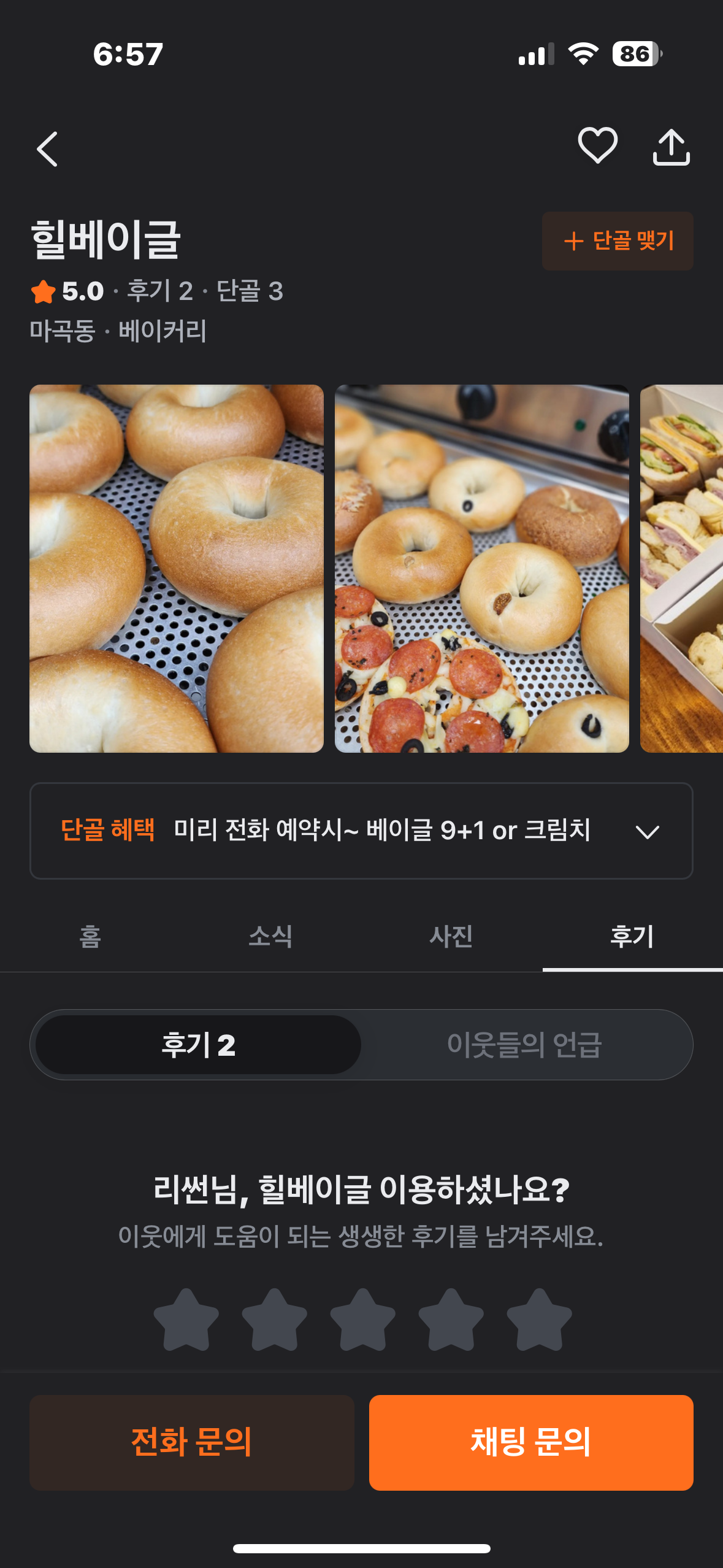 특히 하단의 정보는 업장의 위치와, 평점, 후기 등으로 업장의 정보를 주된 요소이다.