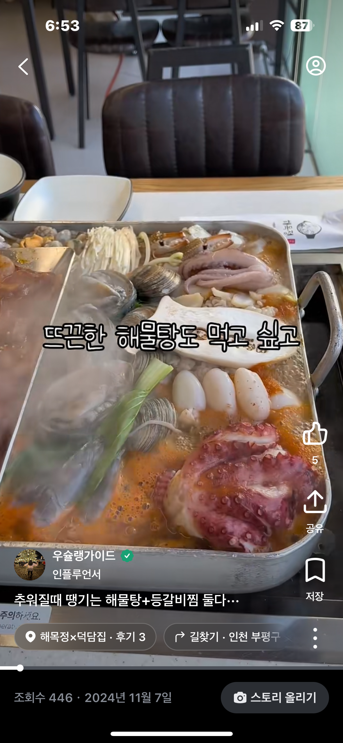 재생 화면은 기존 숏폼과 차이점이 거의 없다. 콘텐츠만 우리동네 정보로만 바뀐것 같다.